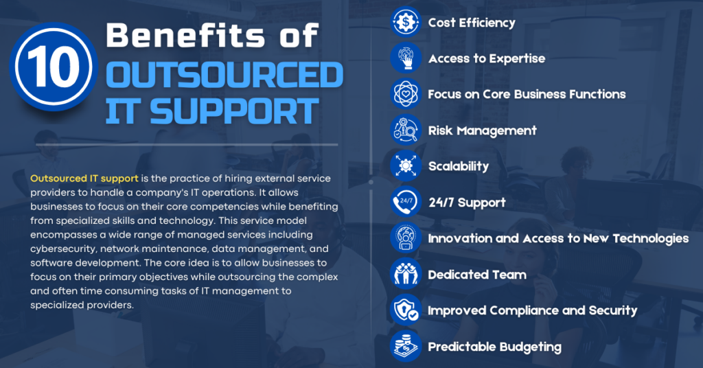 Outsourcing allows organizations to focus on core business areas, driving innovation and growth. It provides access to the latest technologies and expertise without heavy investments. With 24/7 support services, risk management, and compliance expertise, companies enjoy enhanced stability and security. The scalability and technological access provided by outsourced IT are critical for businesses to remain competitive in a tech-driven marketplace.